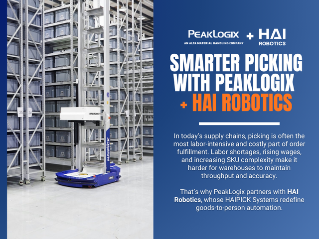 In today’s supply chains, picking is often the most labor-intensive and costly part of order fulfillment. Labor shortages, rising wages, and increasing SKU complexity make it harder for warehouses to maintain throughput and accuracy. That’s why PeakLogix partners with HAI Robotics, whose HAIPICK Systems redefine goods-to-person automation. The Challenge: Traditional Picking Manual picking presents several ongoing challenges: High labor costs…